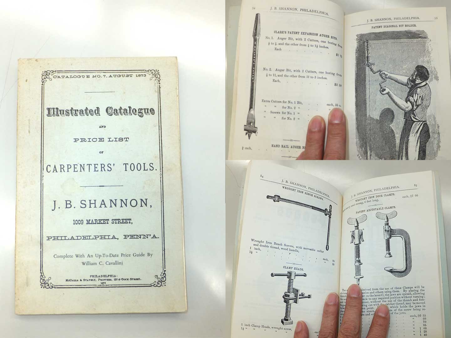 1873年の大工道具のシャノン社のカタログです。ほかに建築金物も取り扱っていたようです。