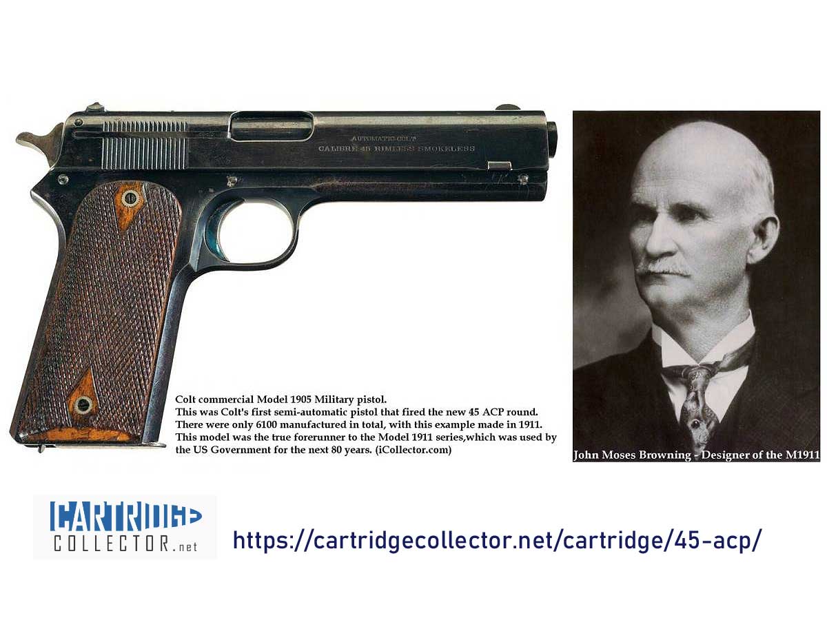 それにしても右側の解説には、すごいことが書かれています。ブローニングを真似てコルトが作ったのではありません。ブローニングの設計をコルト社が共同で開発して作り上げたのが、コルト1905です。そこからガバメントに至るまでの改良にもブローニング氏とコルト社は共同で歩んでいきます。ですから1905もガバメントもジョン・ブローニングの設計だと言われています。