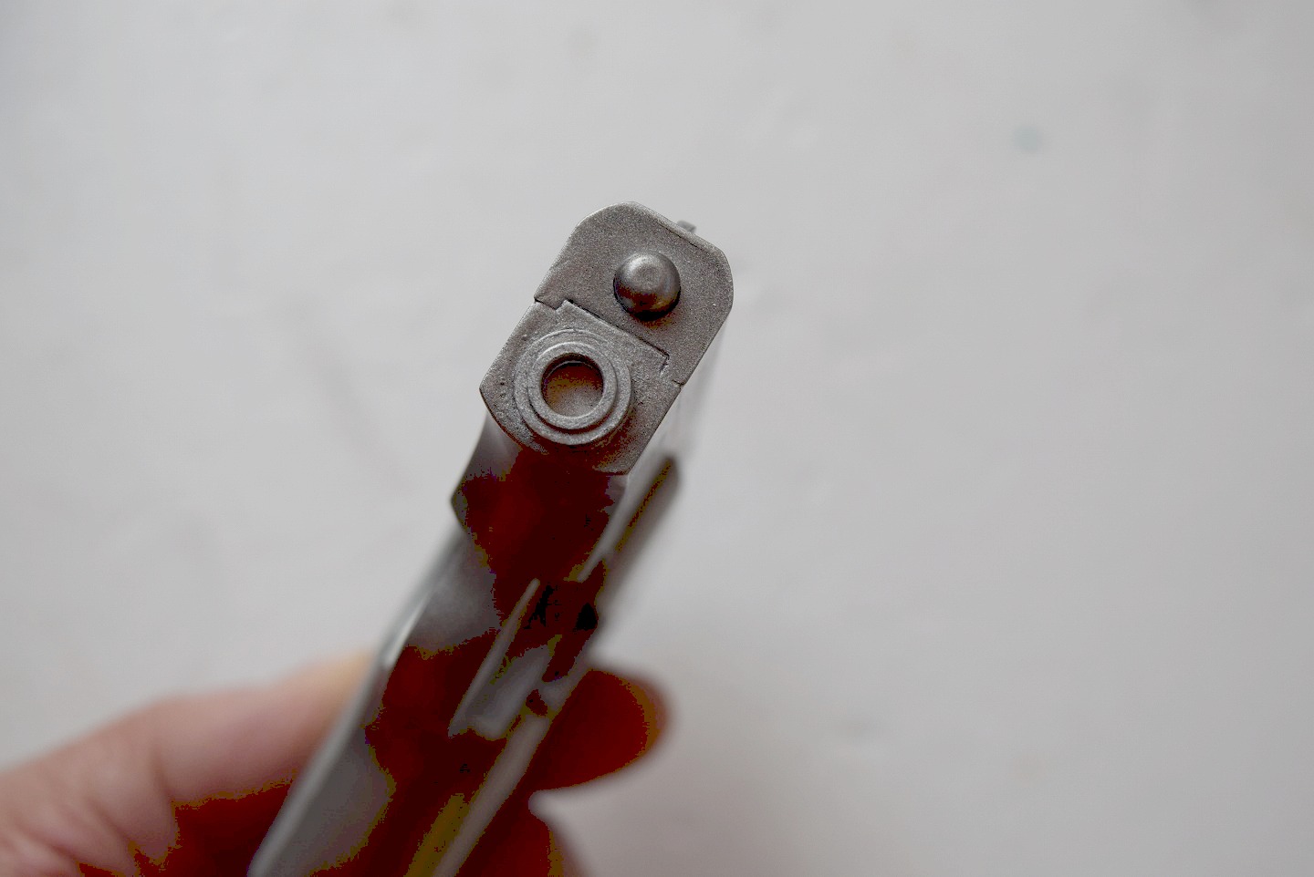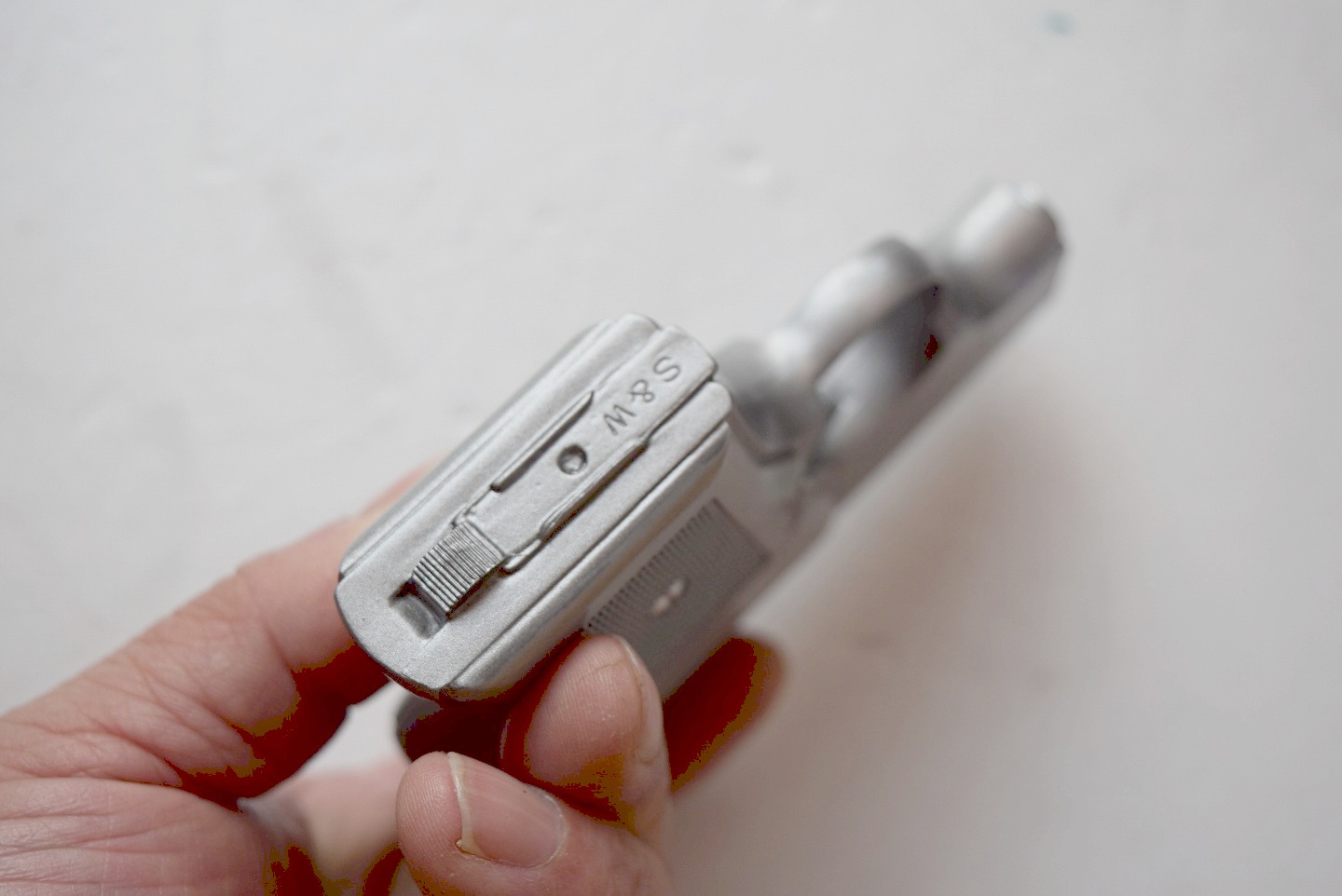 この個体は、人パンの K'z さんが以前記事にしていたトラビス屋さんのモデルとは、銃口部分が少し違っています。 一部刻印が薄いところがありますが、全体的には良く出来ていると思います。ちゃんと左グリップの右上にあるインジケータも 再現されています。