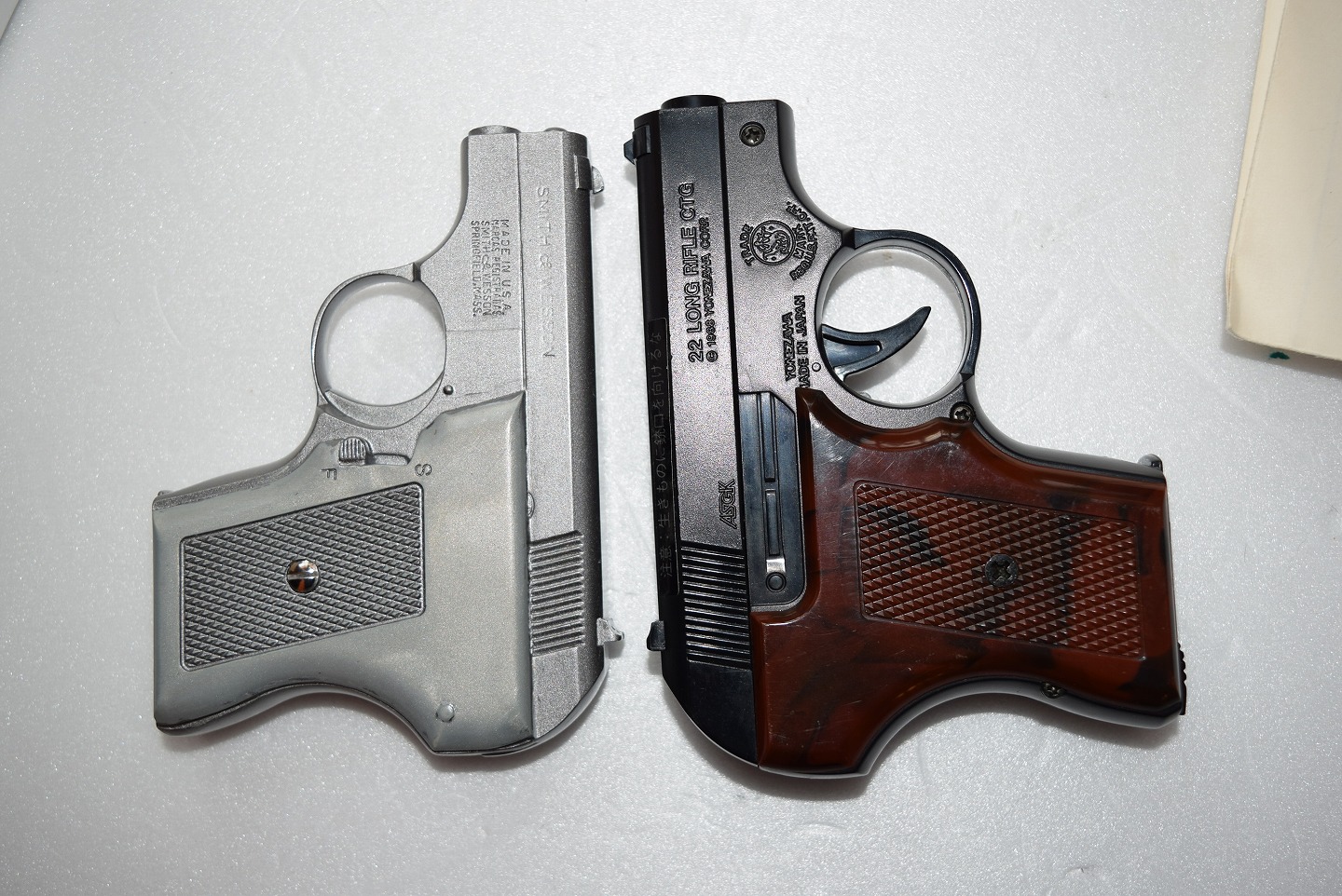 コンパクトにまとまっています。S&W はハンマー式です。S&W は22ロングライフルですが、25ACP よりも大きな銃になってしまっています。