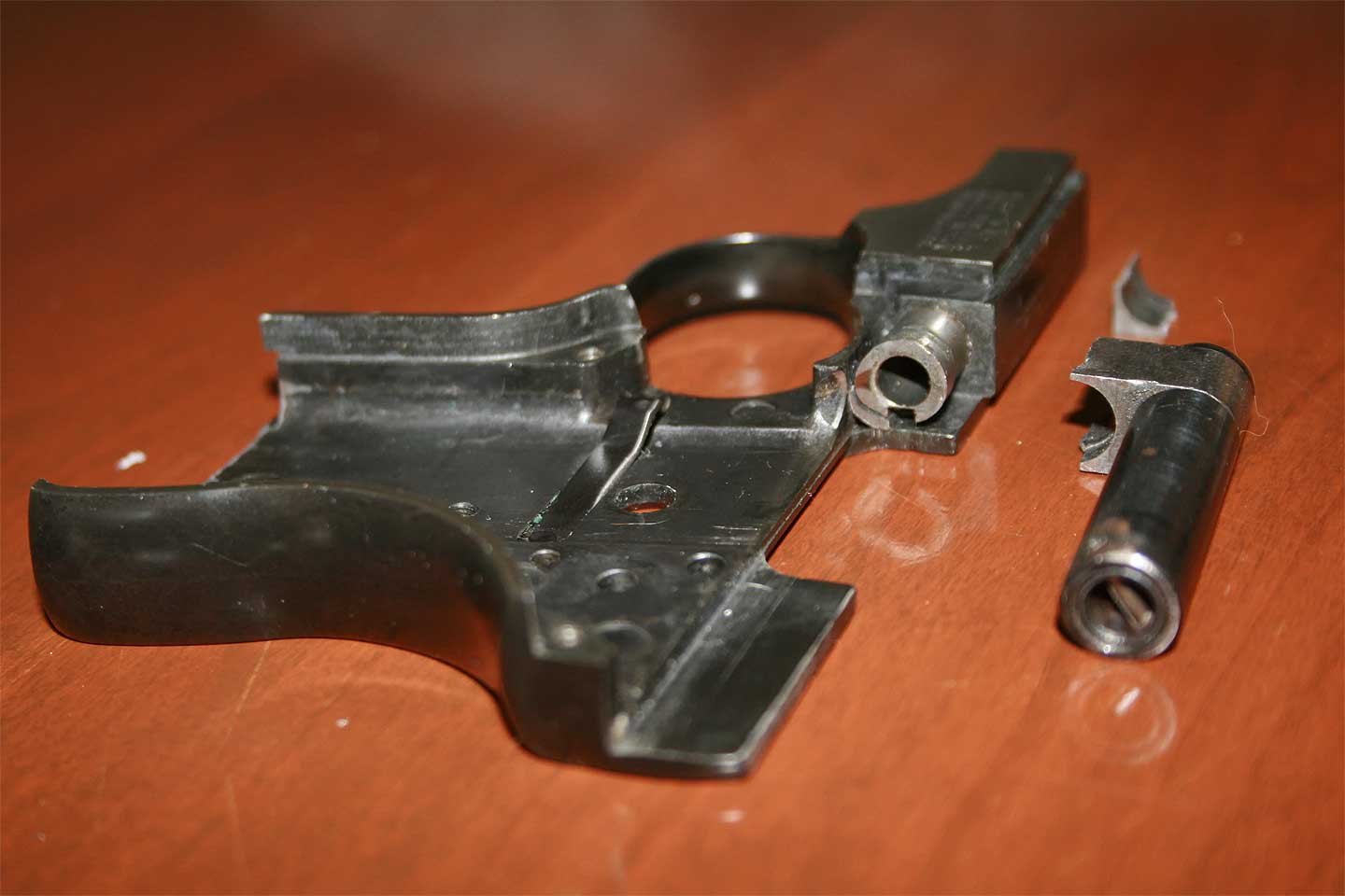 ネットをうろついていたら実銃の壊れたエスコートの写真がありました。たしかにこの薄さでは危ないですね。 写真3の丸い筒は、バレルでは無くってリコイルスプリングが入る部分です。バレルは2枚目写真のようにフレーム内に入っています。