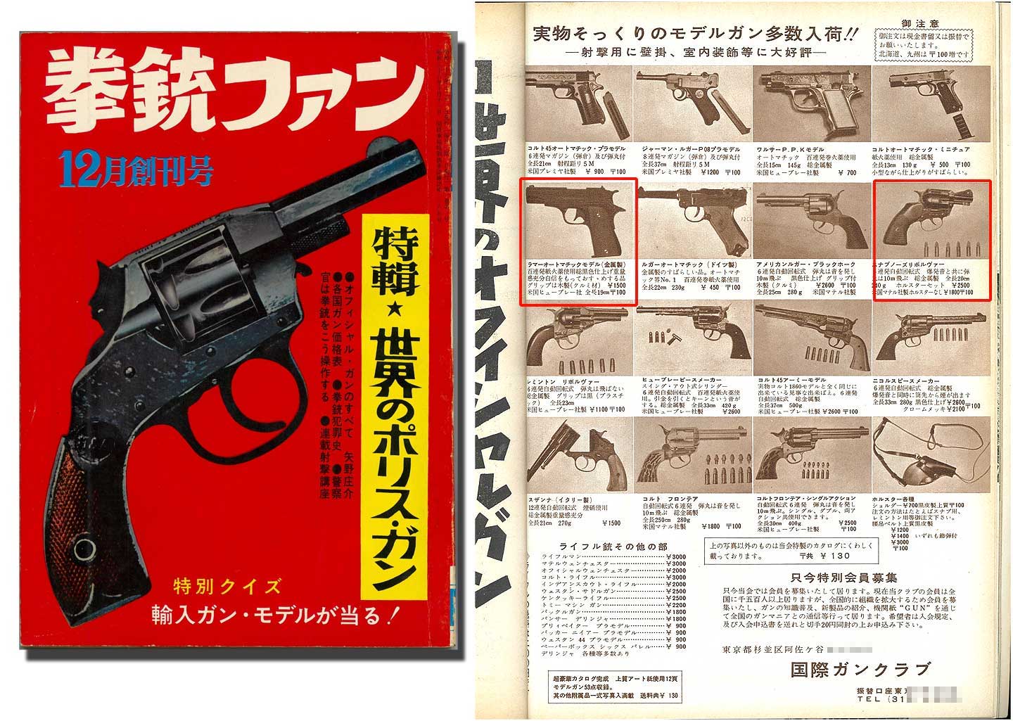 その12月・創刊号にすでに国際ガンクラブ(のちのINTやコクサイ)の広告があり、そこにモデルガンと書かれています。