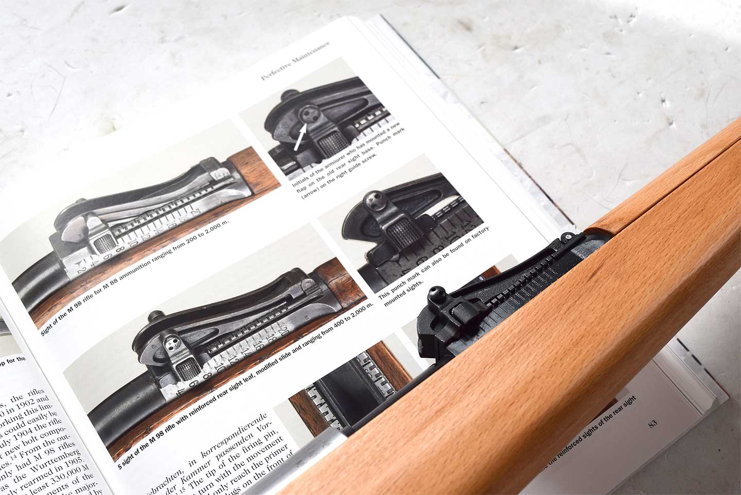 変わったリアサイトです。もともとGew88 に搭載されていてモーゼル社では反対のようでしたが、軍が搭載させたものです。