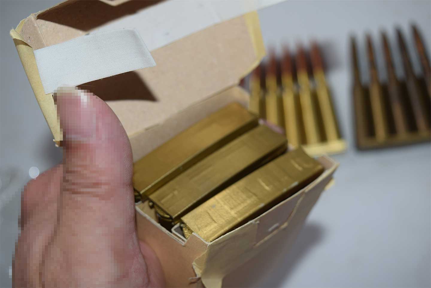 こちらも今では手に入りにくくなりました、モーゼル弾のボックス入りを再現しています。
