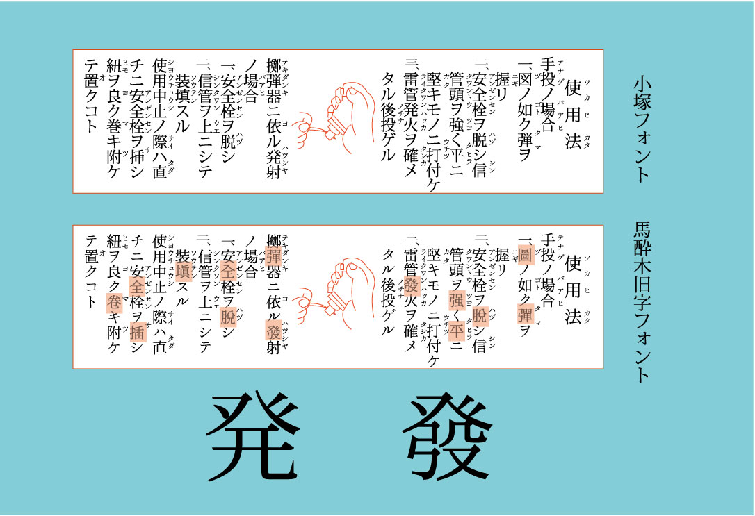 上を普通のフォントで作成したのちに下のようにフォントを馬酔木に変えるだけで旧字体が完成します。